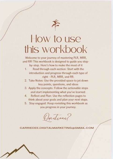 The PLR | MRR | RR Workbook is a straightforward, powerful guide that helps you understand resale rights — and more importantly, how to use them. Whether you’re new to digital products or tired of spinning your wheels, this book gives you the clarity, confidence, and steps to start making money online now.